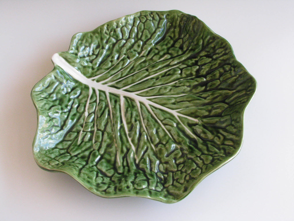 Vintage Majolica Green Cabbage Leaf Bowl and Platter Made in Portugal