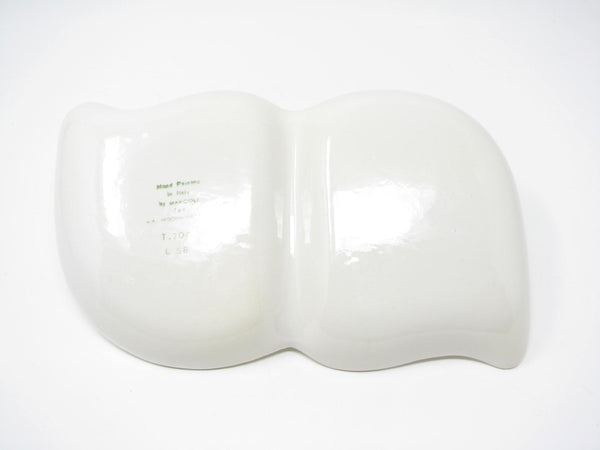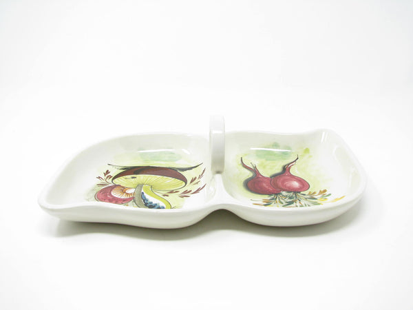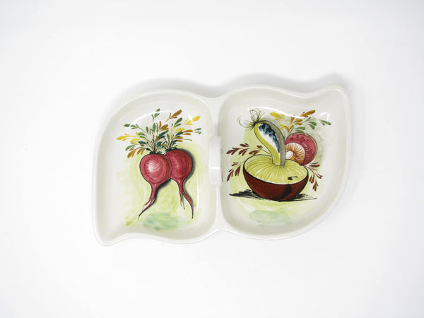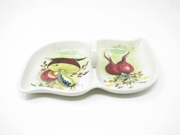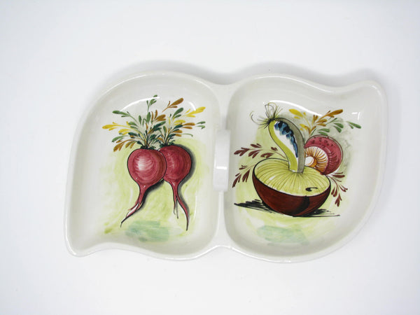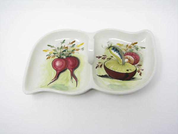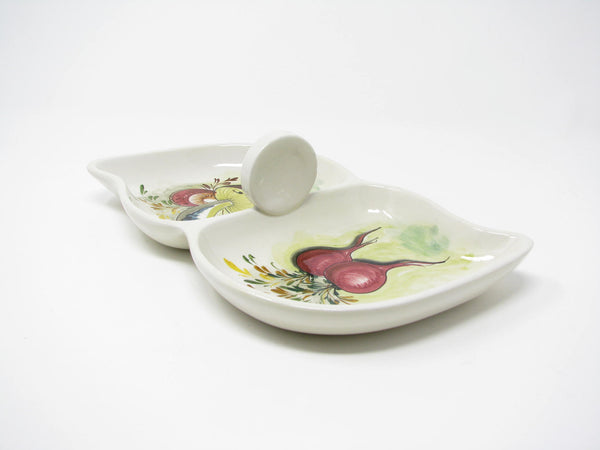 Vintage Mancioli (Italy) ceramic relish tray featuring hand-painted vegetable design. This piece was made in Montelupo Fiorentino, Italy for Lachman & Co.