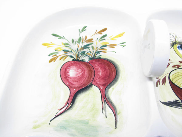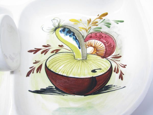 Vintage Mancioli Italian Ceramic Relish Tray with Hand-Painted Vegetable Design