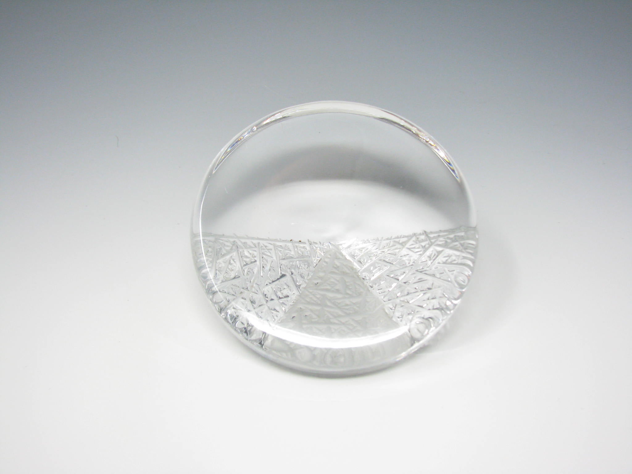 The Mario Cioni ‘Path to Success’ crystal paperweight. The design consists of 2 patterned sections with a frosted 'path’ down the middle. Signed.