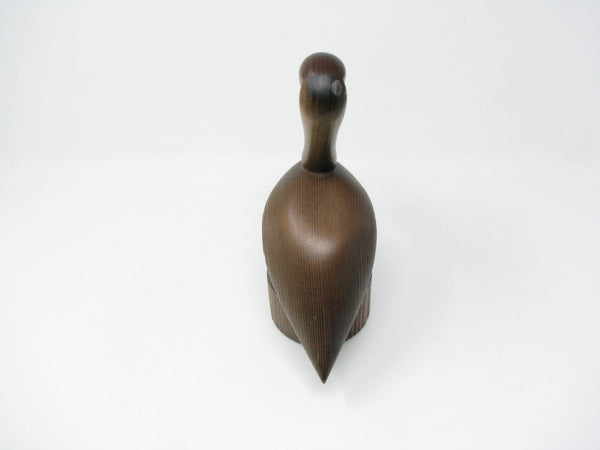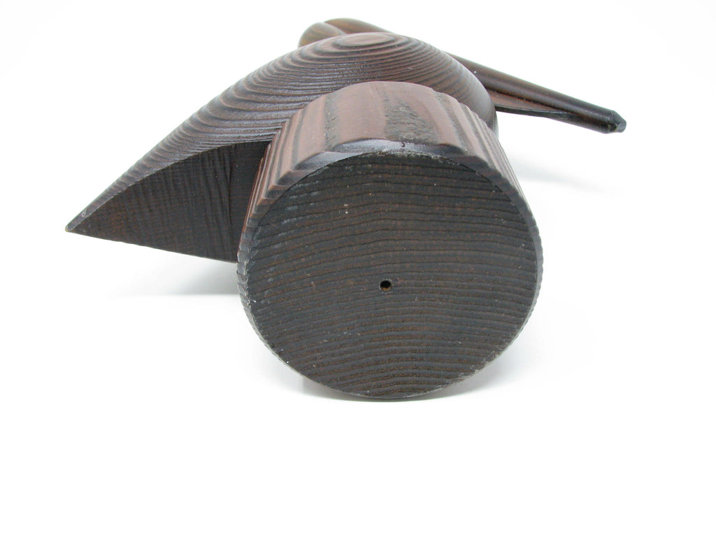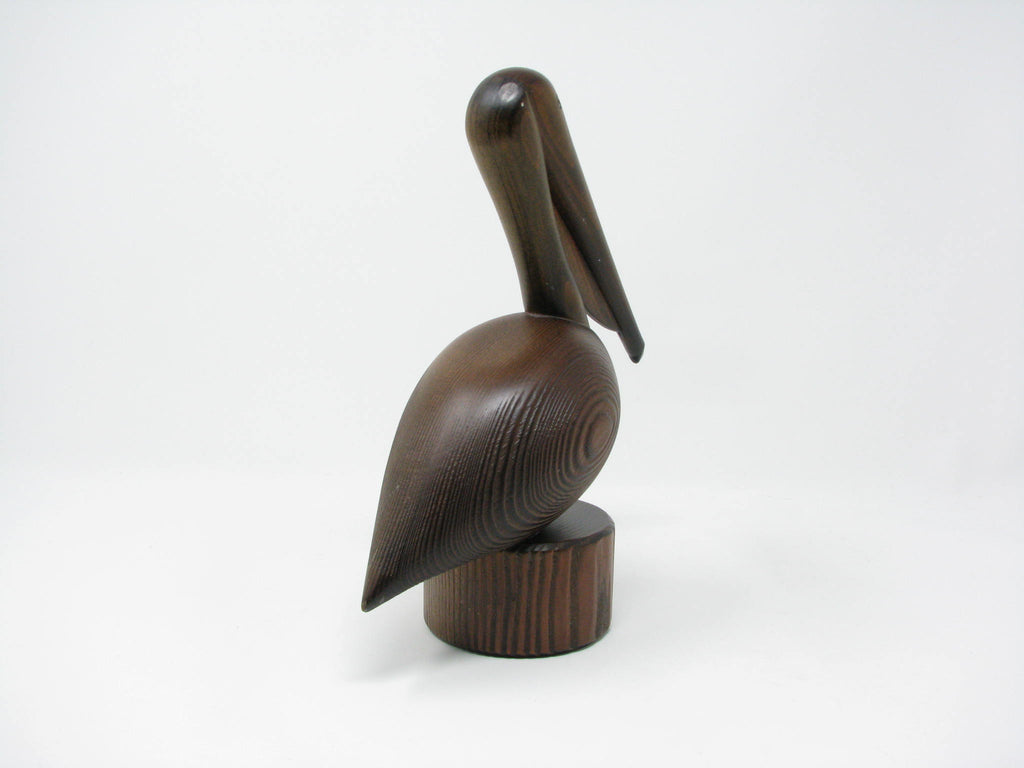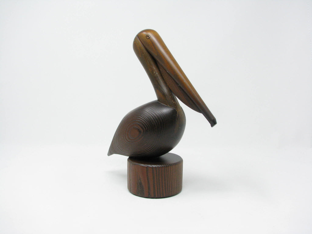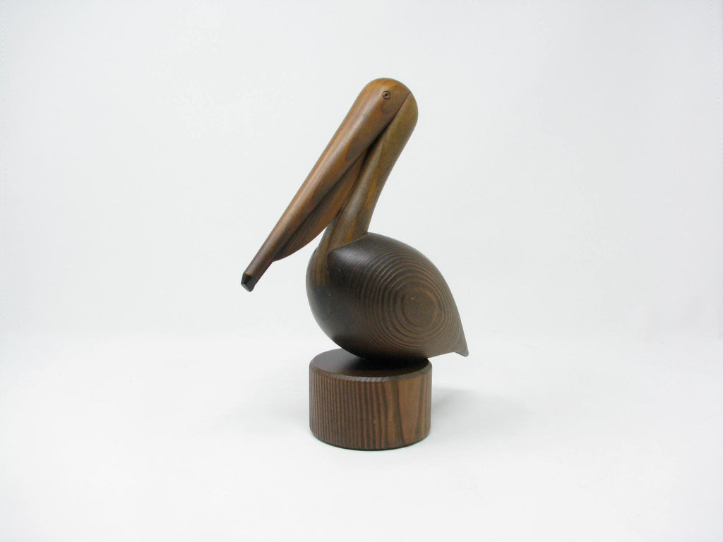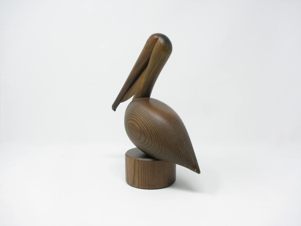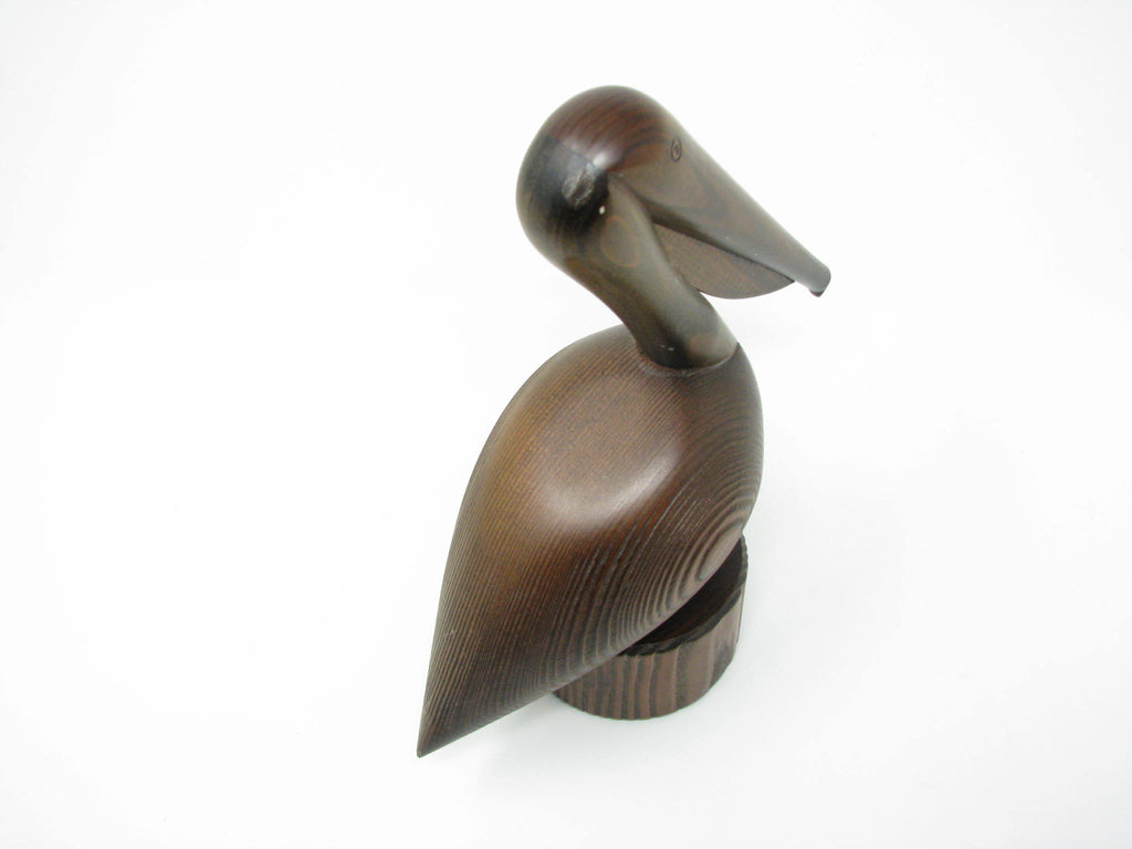 Vintage 1960s carved cryptomeria wood pelican figurine. Made in Japan.