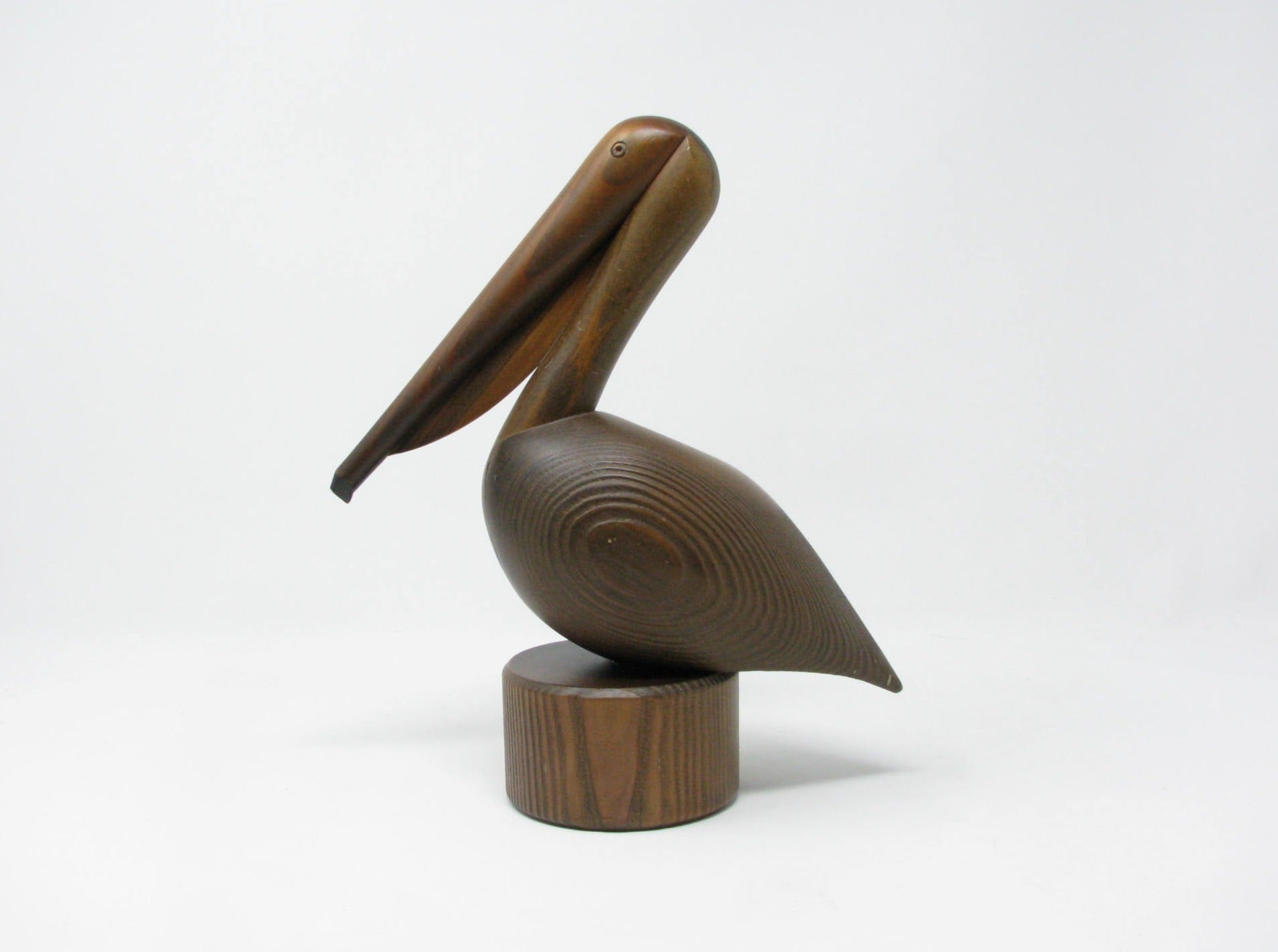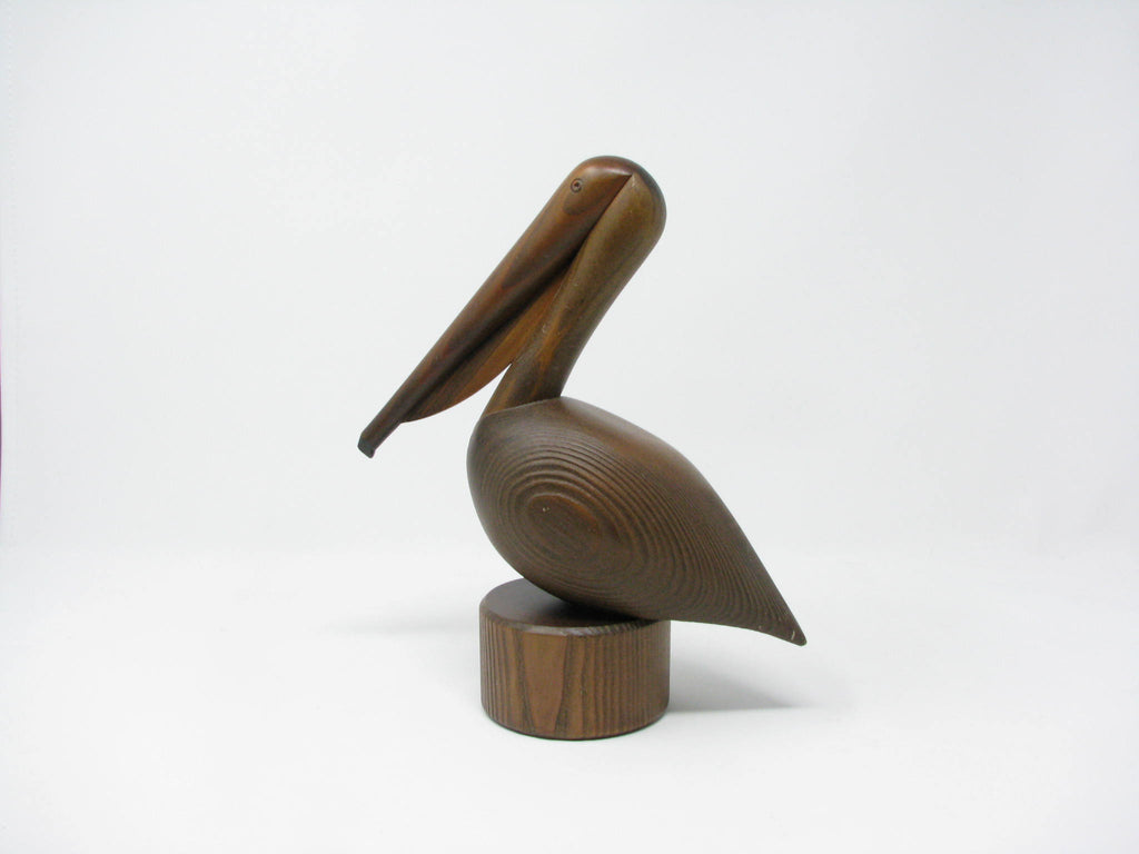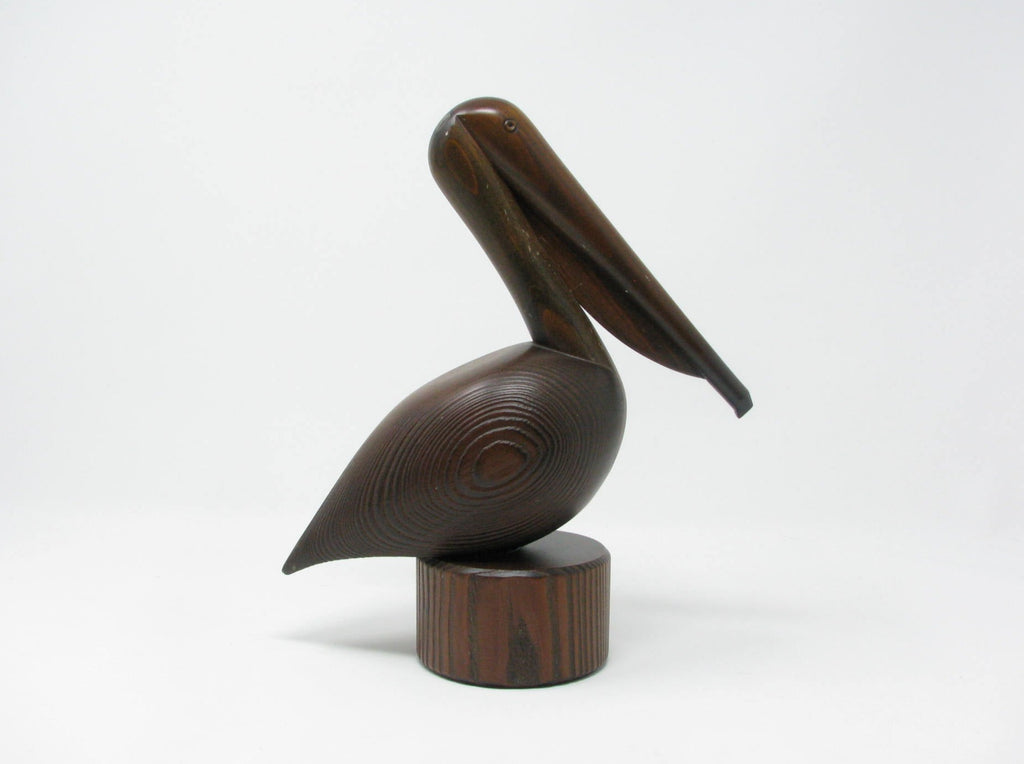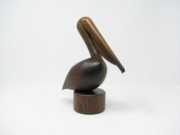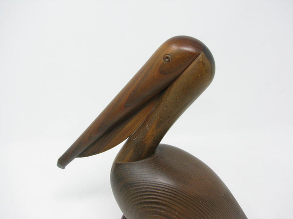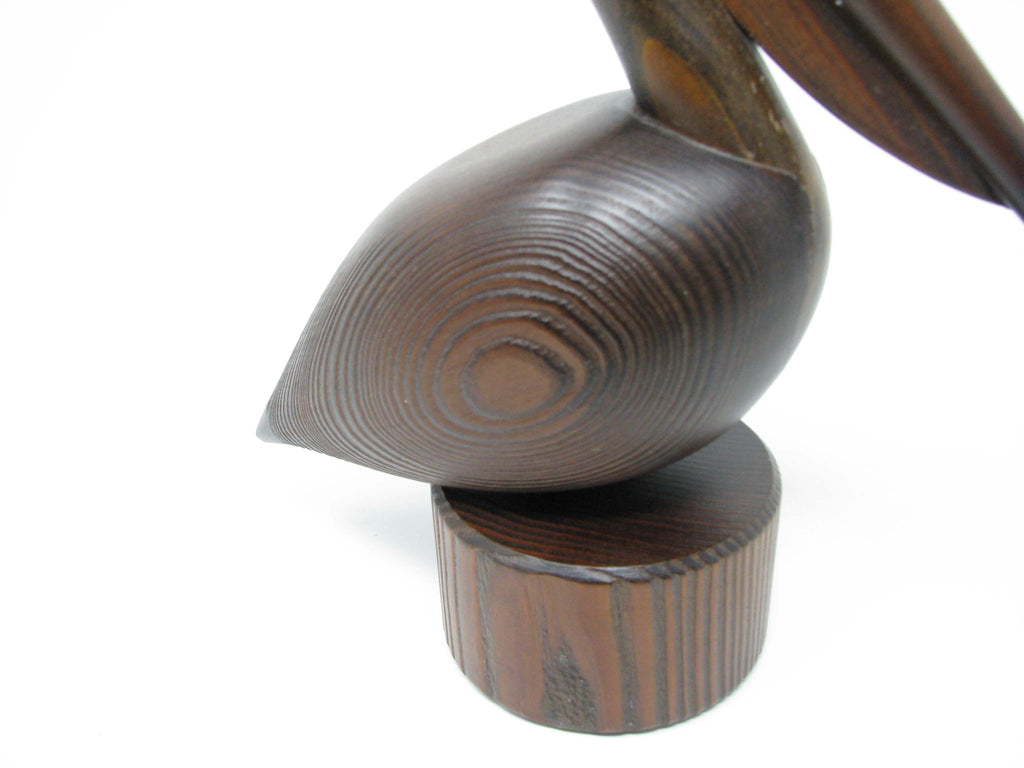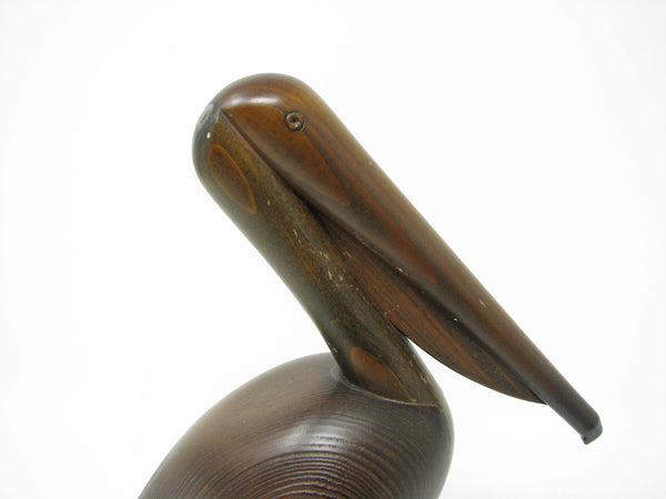 Vintage Mid-Century Modern Carved Cryptomeria Wood Pelican Figurine