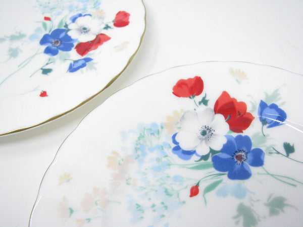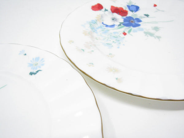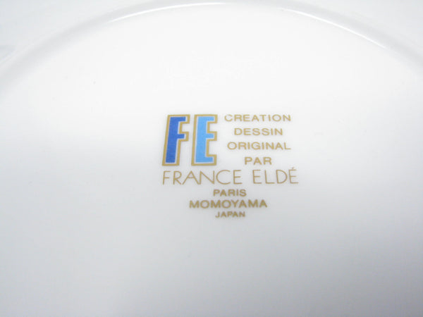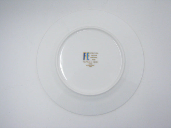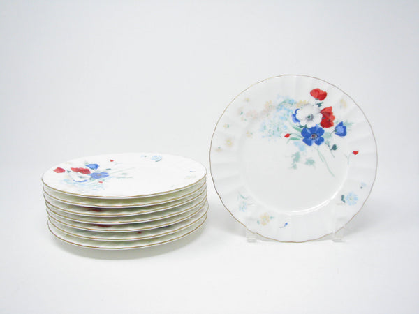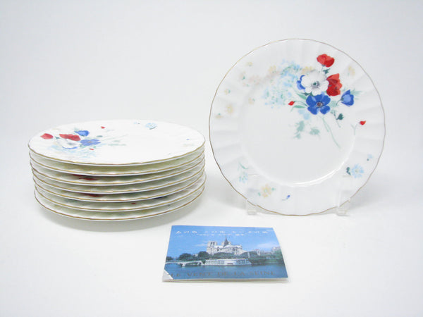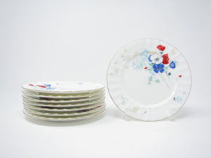 Set of 8 vintage Momoyama France Eldé Paris optic white fine china bread / dessert plates with bright floral design.
