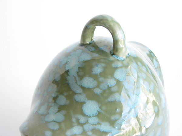 Vintage Mottled Green Glaze Ceramic Hanging Planter