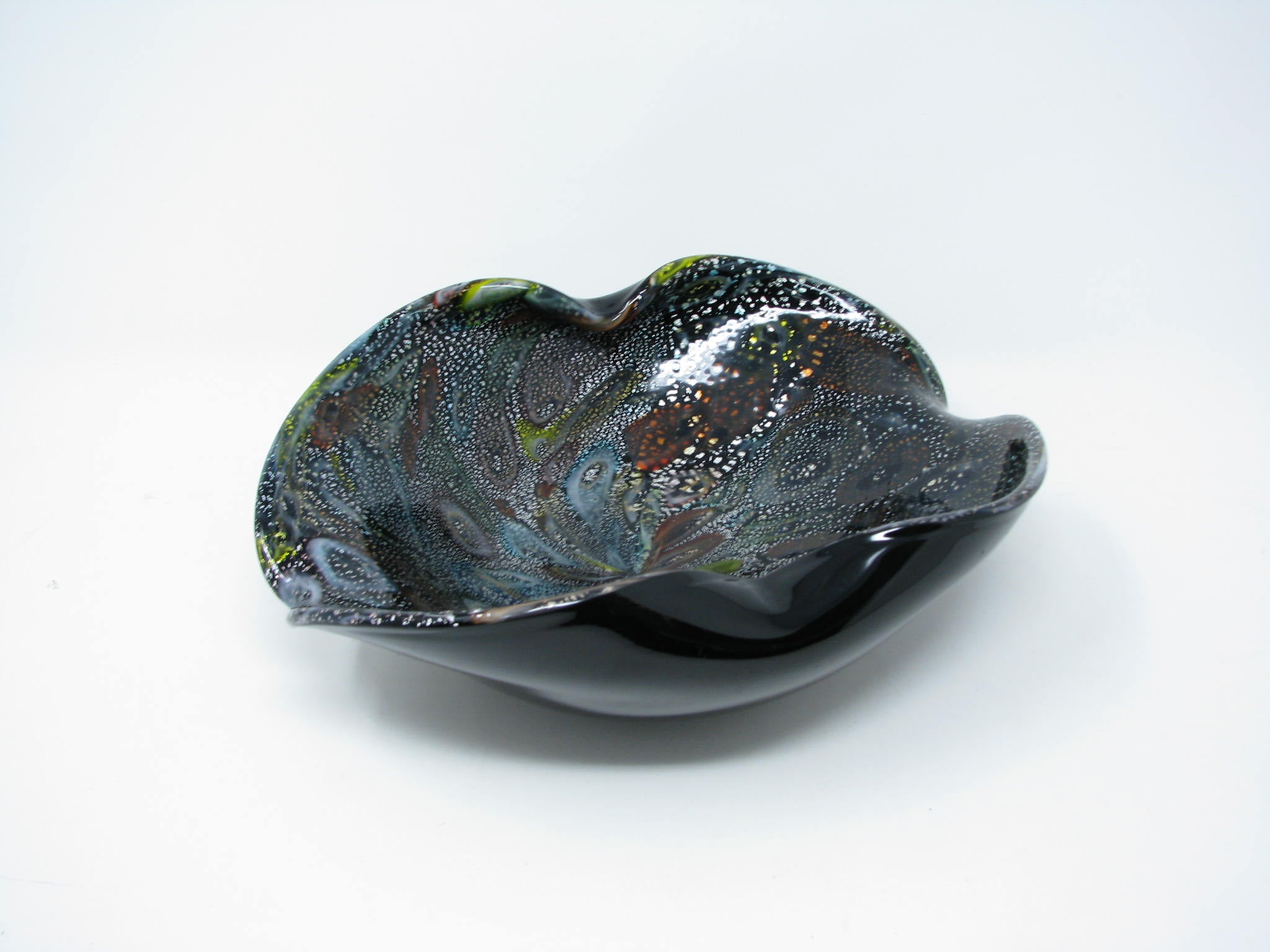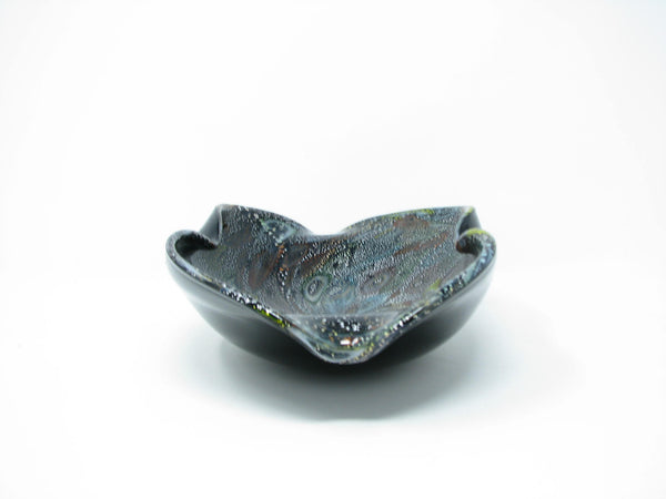 Vintage Murano Aventurine Black Art Glass Trinket Dish or Bowl