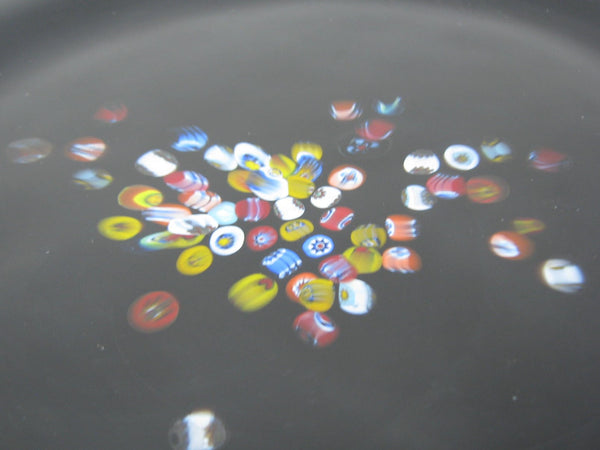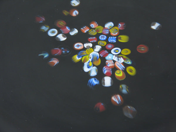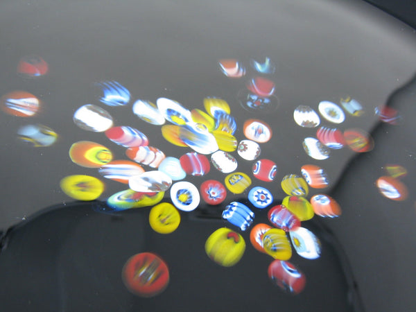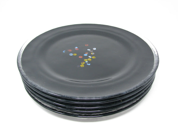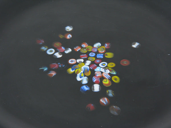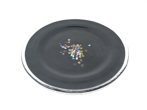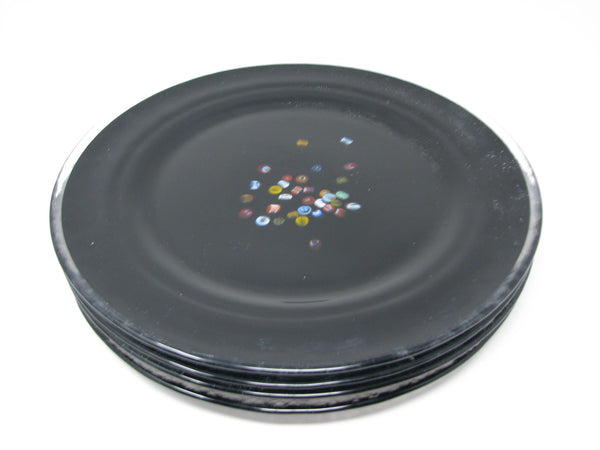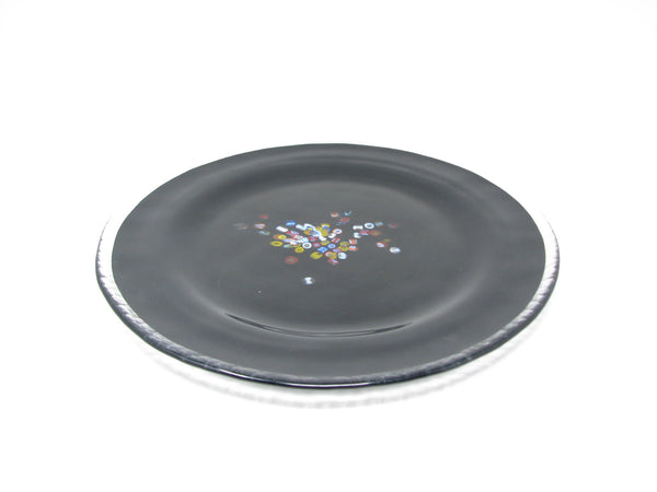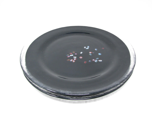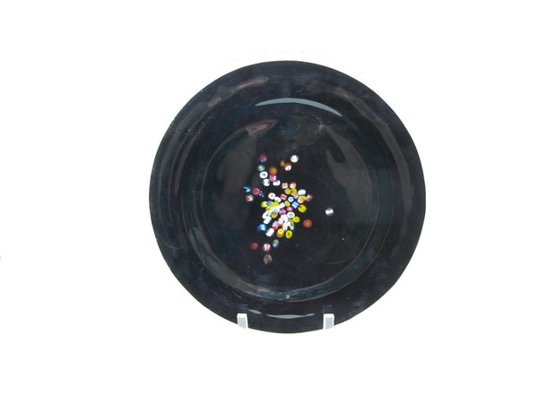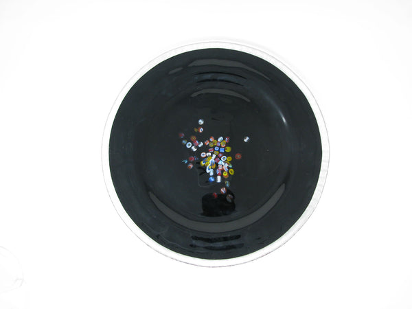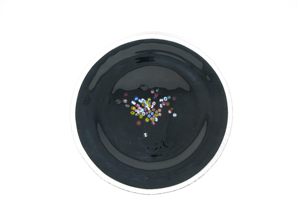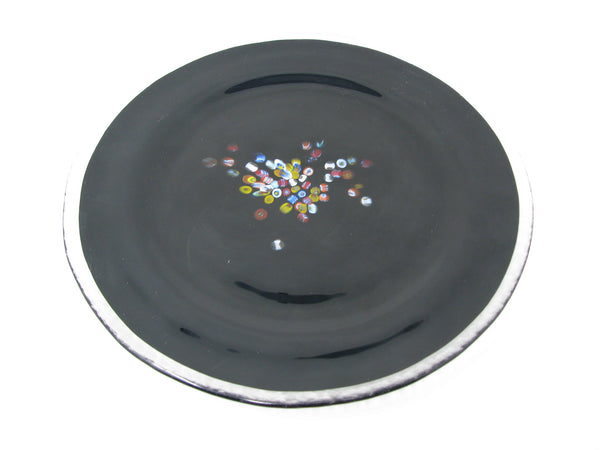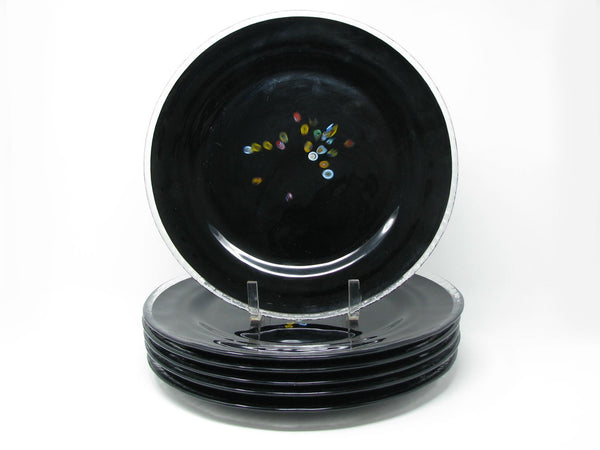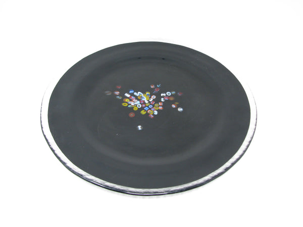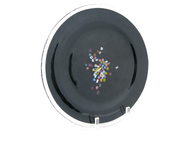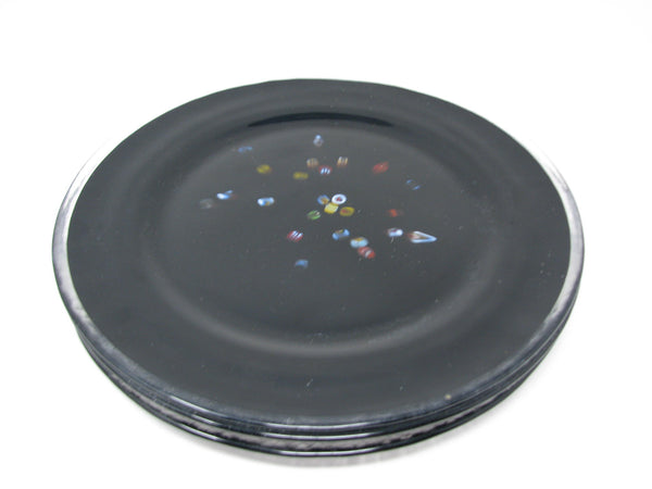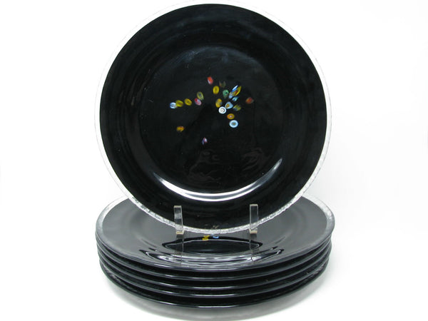 Vintage Murano Studio Art Glass Black Charger Plates with Millefiori Pattern - 6 Pieces