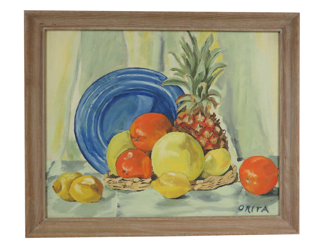Vintage Orita Larson Framed Oil on Mason Board - "Still Life With Pineapple"