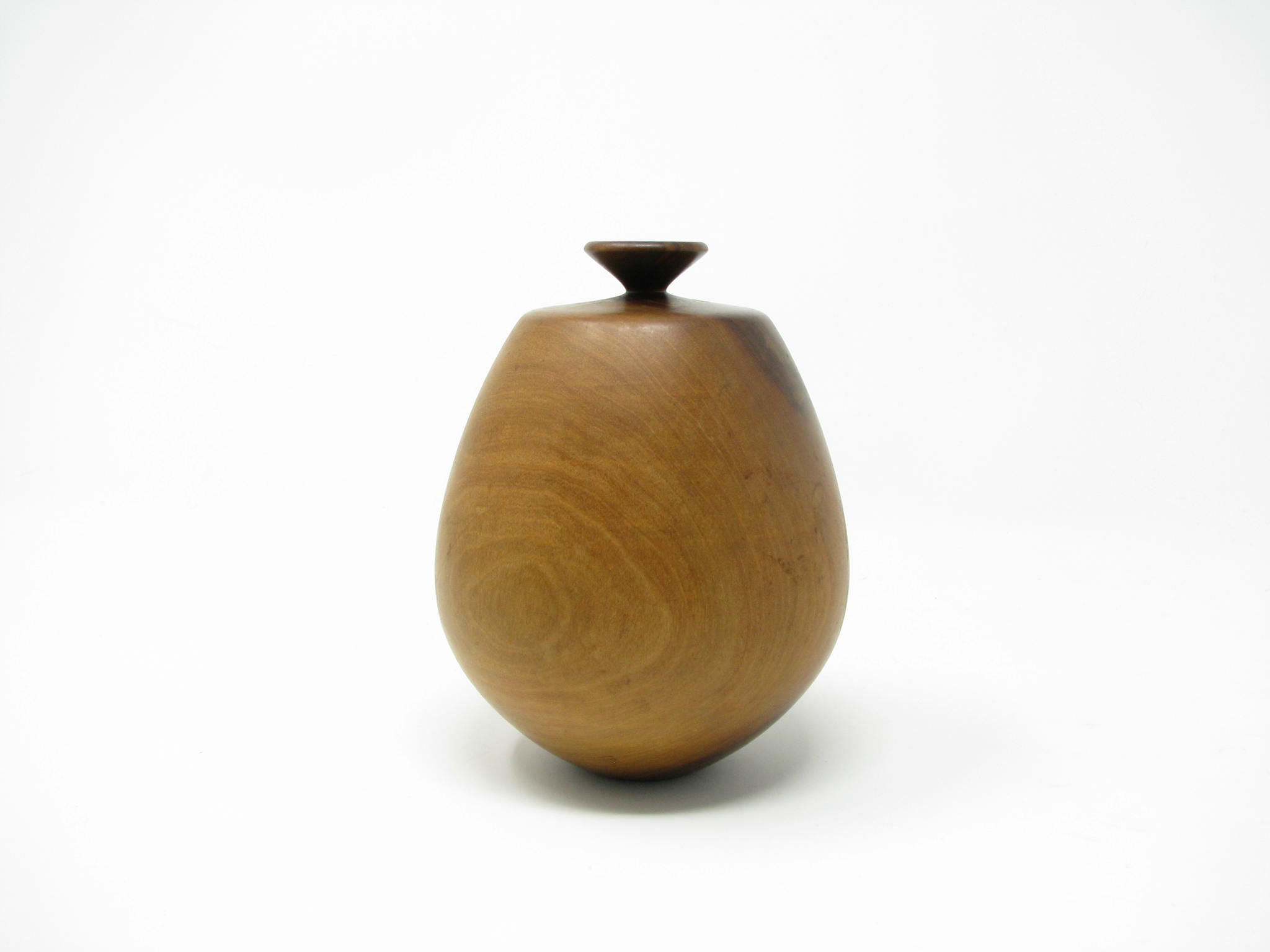 Fantastic vintage American Black Walnut wood turned weed pot / stick vase with delicate neck ring, lip and mouth. In the style of Rude Osolnik.