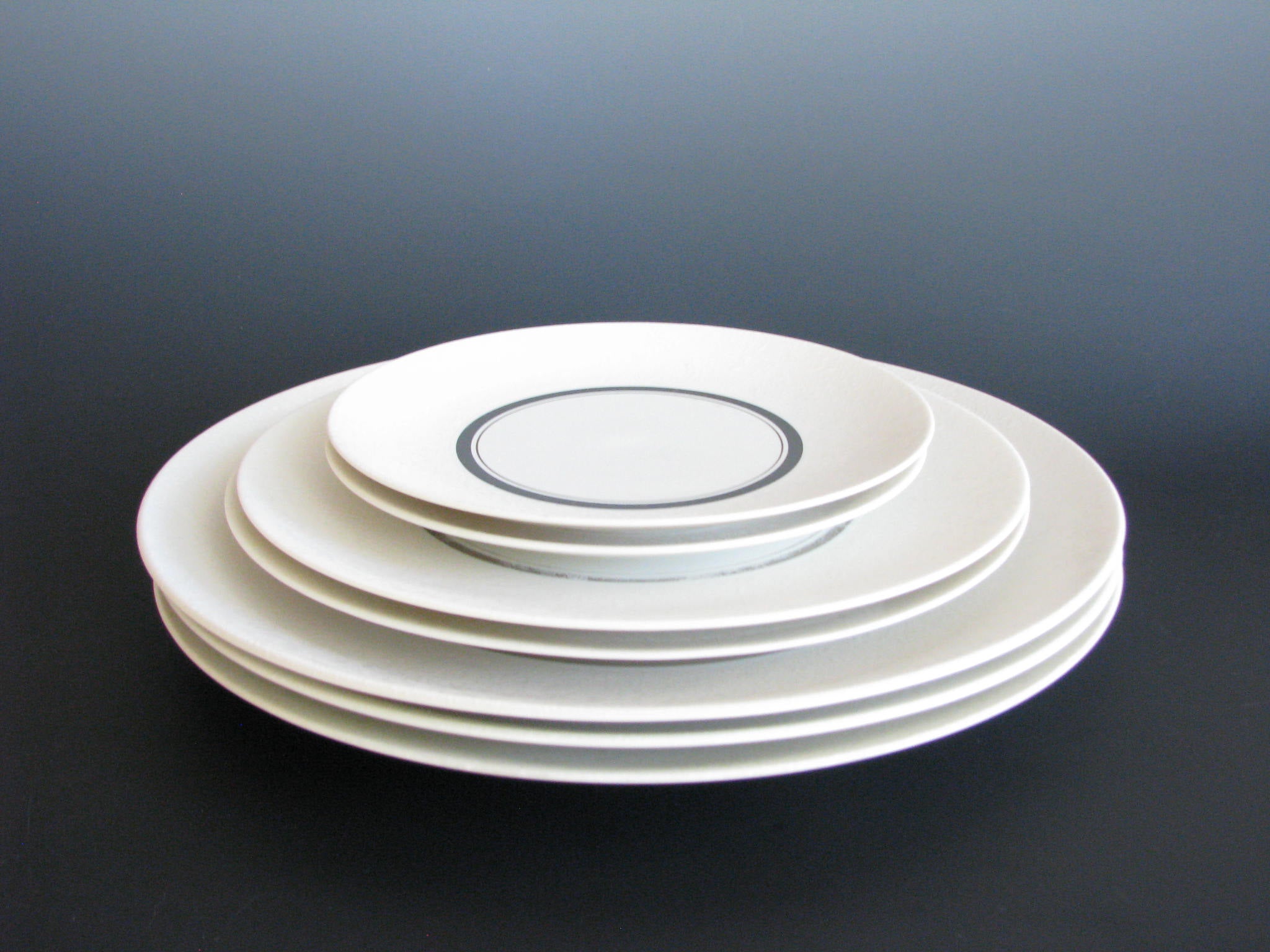 Damage or Points of Notice: No chips or cracks. There is one dinner plate with wear on gold detail, and one salad plate with great wear of gold detail. Please see photos.