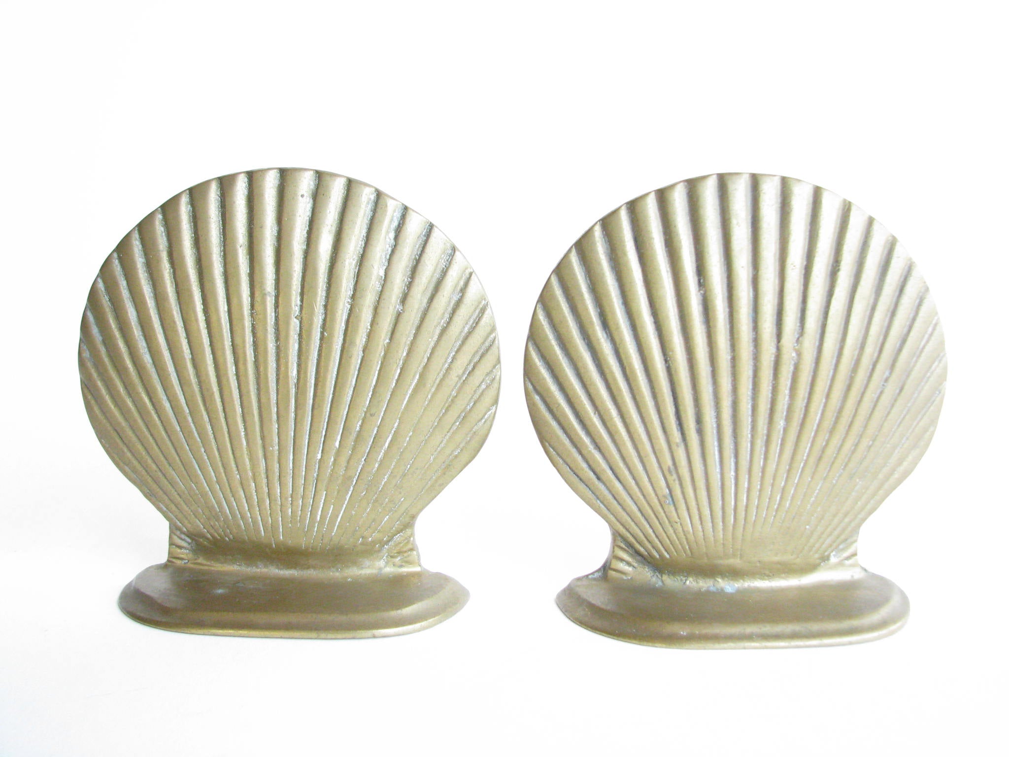 Vintage Solid Brass Scalloped Shell Shaped Bookends - a Pair
