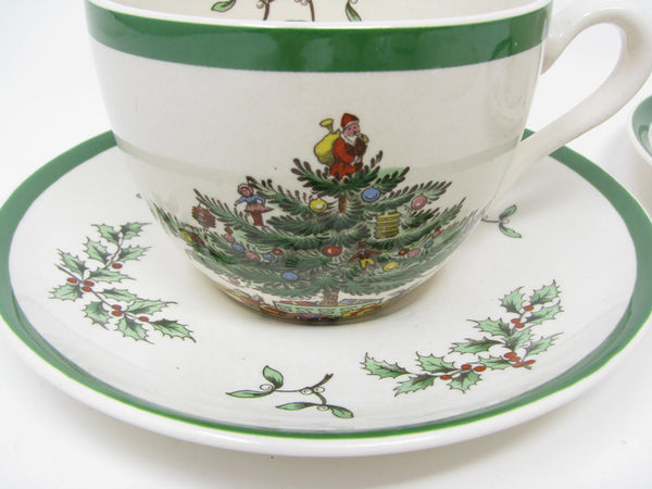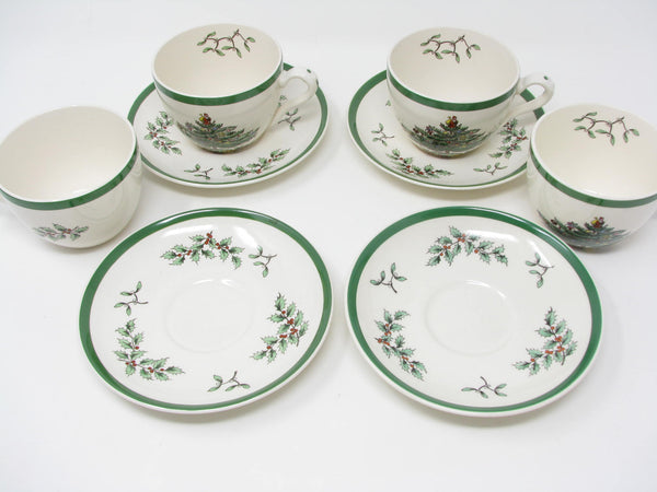 Vintage Spode Christmas Tree Earthenware Cups & Saucers Made in England - 8 Pieces - 2 Sets Available