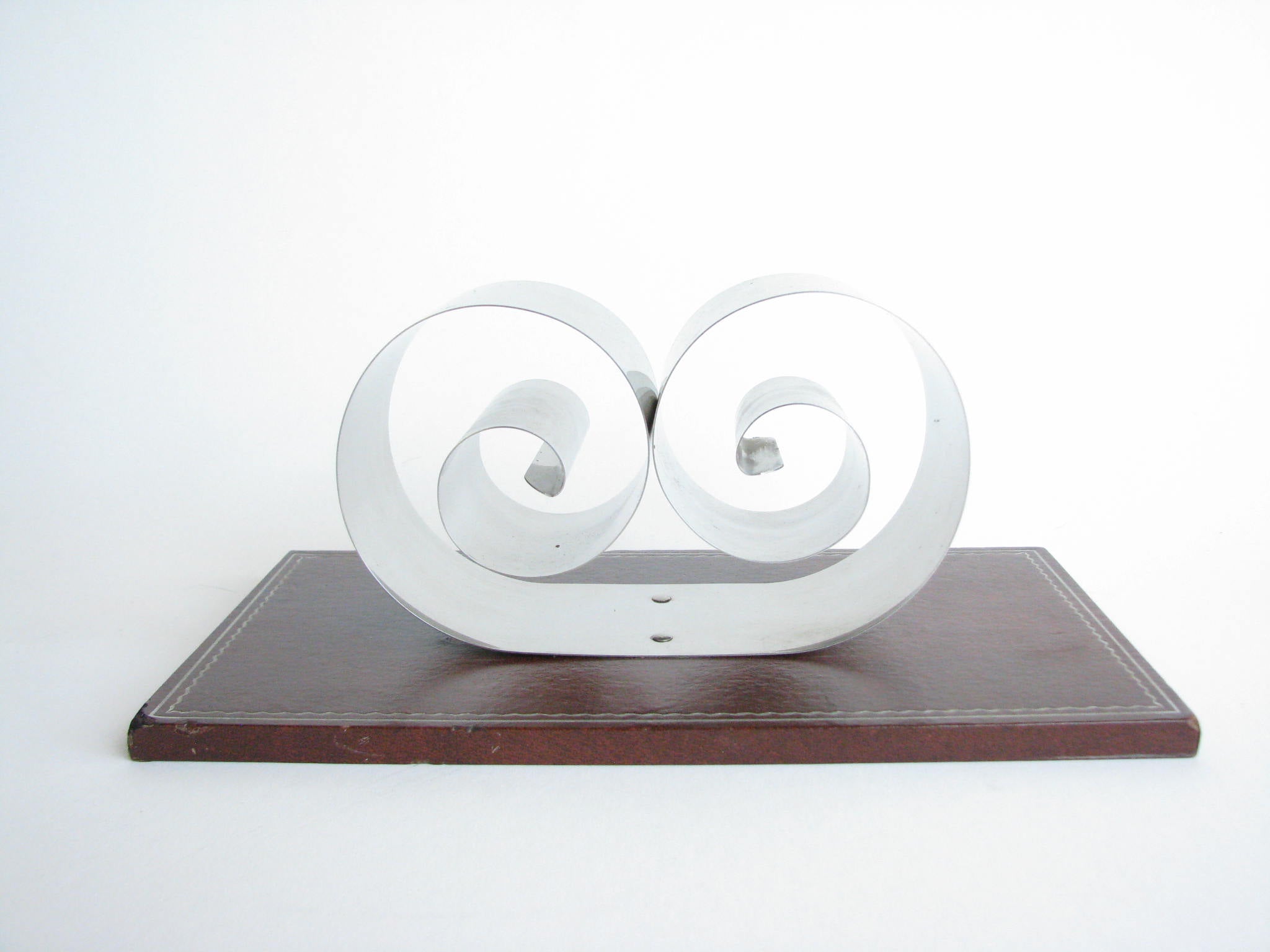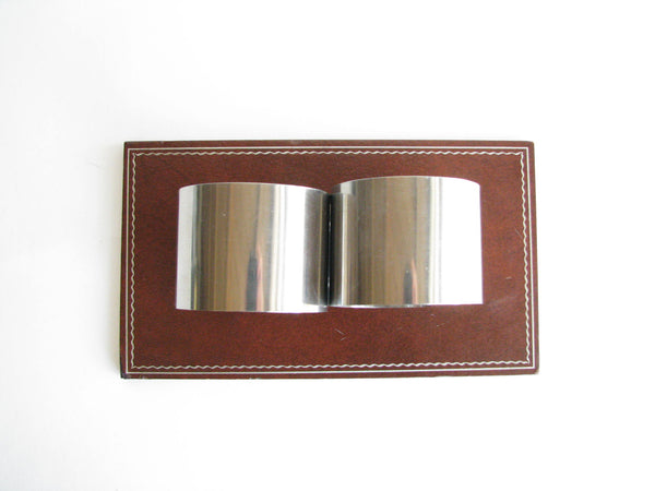 Vintage Spring-Tite stainless steel double coil rack on faux leather wooden base. 'The automatic book rack'. Books/media not included.