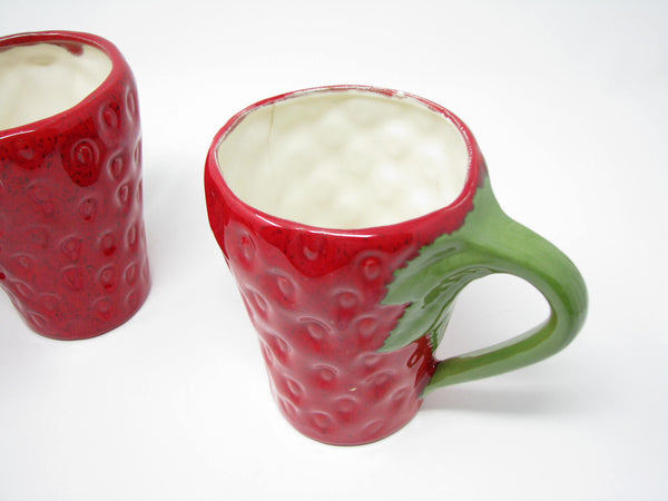 Vintage Strawberry Shaped Hand-Painted Ceramic Mugs - 4 Pieces