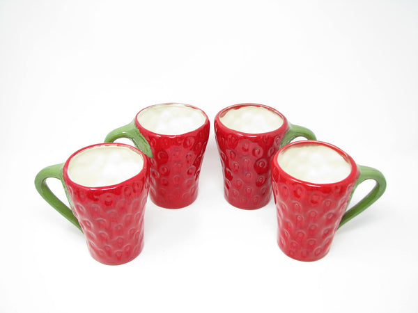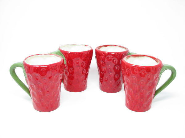 Vintage set of 4 strawberry shaped hand-painted ceramic mugs.