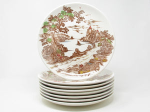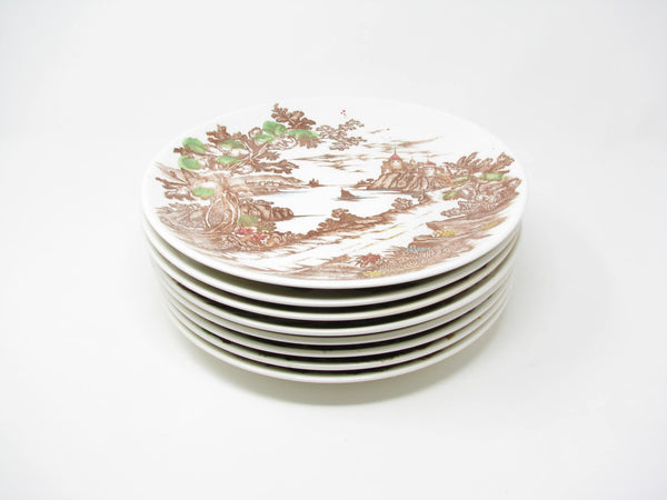 Vintage Ucagco Japan Royal Vista Dinner Plates with Coastal Castle Scene - 8 Pieces