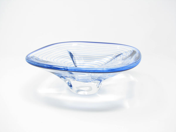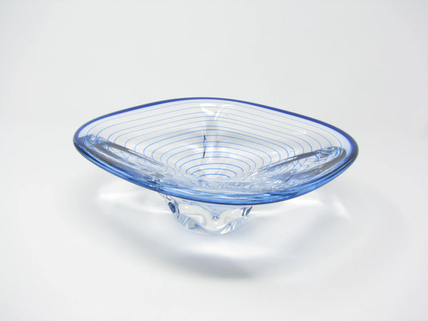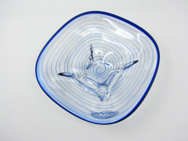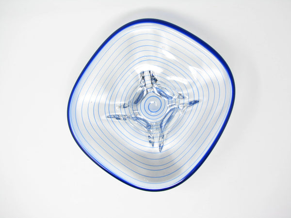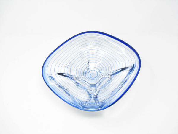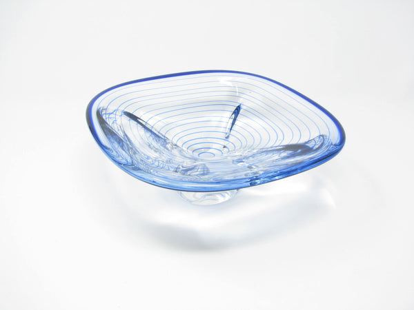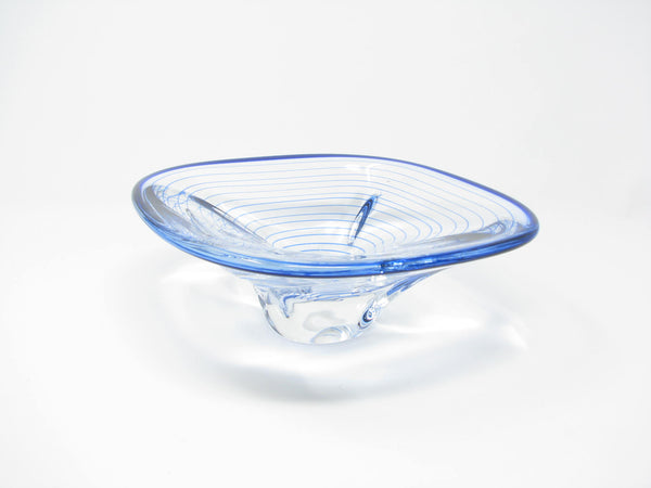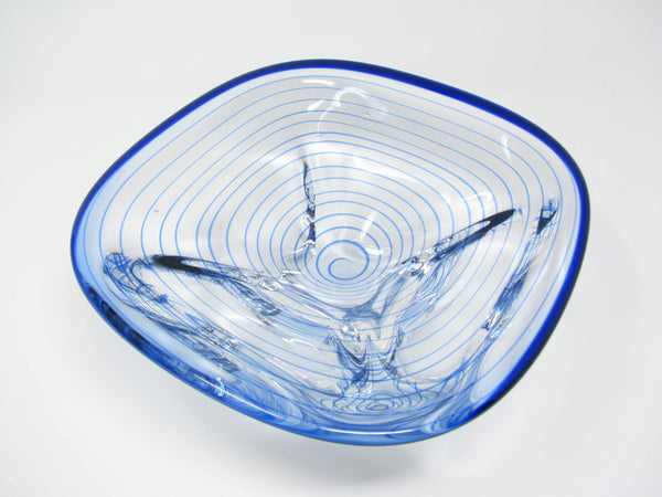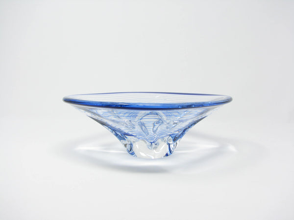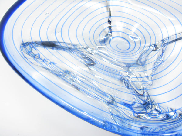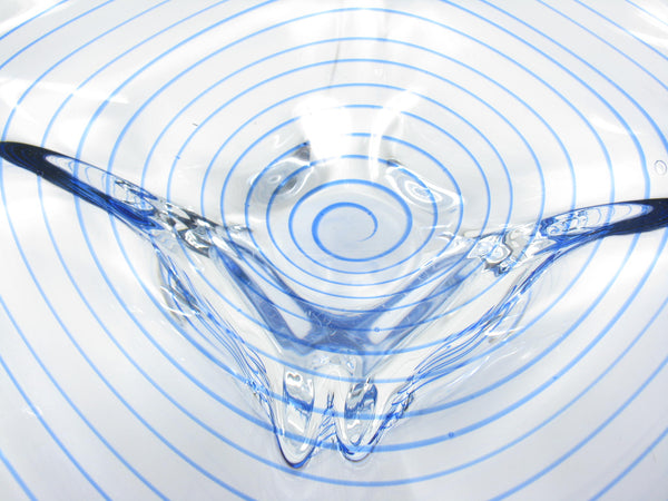 Vintage Vicke Lindstrand Style Studio Art Glass Centerpiece Bowl with Encased Blue Spiral Thread Unsigned