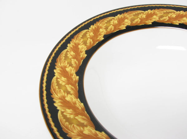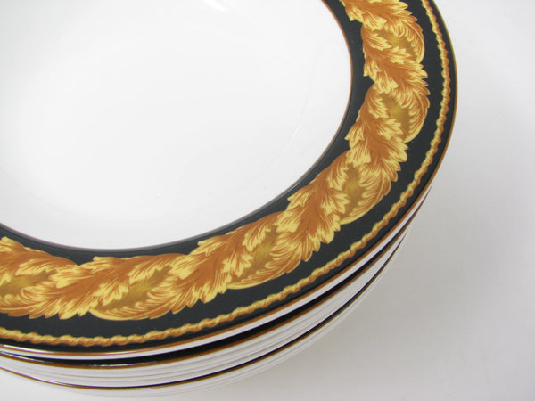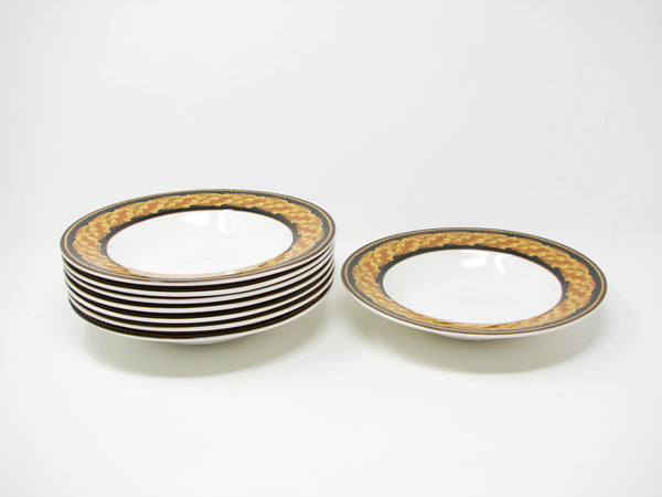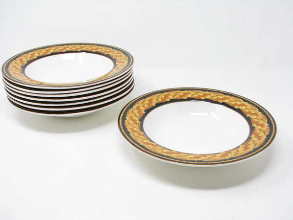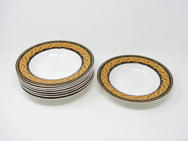 Set of 8 vintage Victoria & Beale Renaissance porcelain rimmed bowls with classic golden yellow leaves pattern.