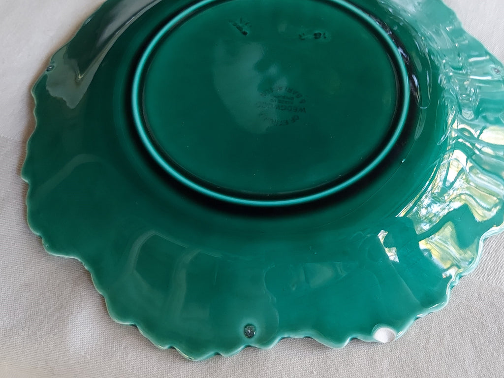 Vintage set of 4 Wedgwood of Etruria & Barlston green glaze majolica cabbage leaf-shaped plates. Stunning color and lovely shape.